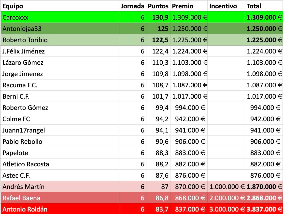 - 12º Astec C.F., Carcoxxx, Racuma FC y J. Félix Jiménez con 6 puntos