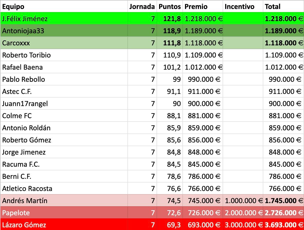 Clasificación Tras la Jornada 7