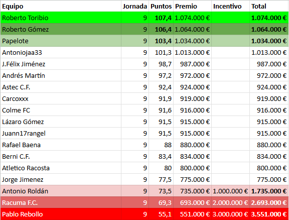 Novena jornada finalizada! Se estira el pelotón, los de arriba siguen sin perder y los de abajo cada vez más abajo, vamos con la crónica!