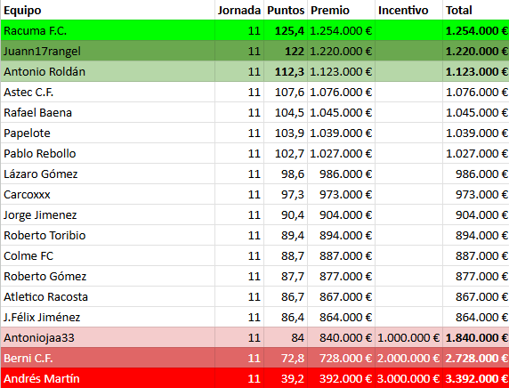 Por último, el duelo más desigualado de nuestra jornada fue el que enfrentaron a Andrew 39.2 (No le funcionó su Real Madrid) contra Juancho’s que hace la mejor puntuación de la jornada con 127 puntos ¡¡ Muchas felicidades