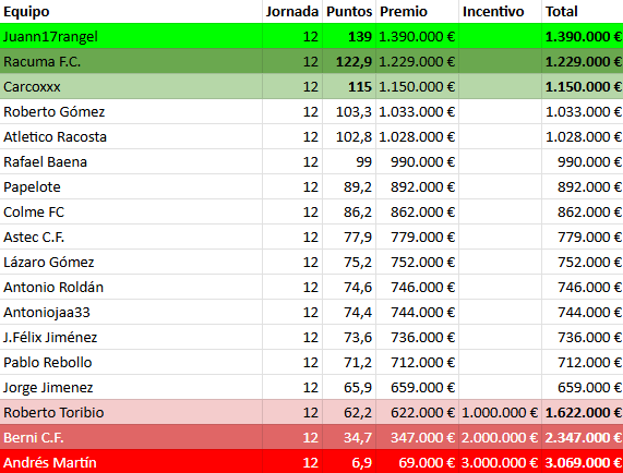 Vamos con el resumen de los enfrentamientos de la jornada 12. Tenemos dos partidos aplazados que van a decidir la mayoría de los enfrentamientos.