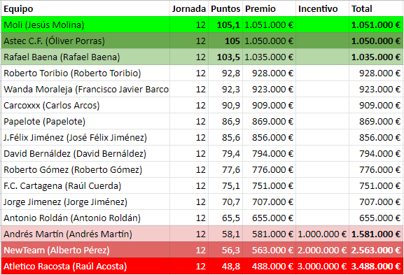 - Colista sigue Newteam, con un parcial de 0 puntos de 36, que vuelve a irse de vacaciones...