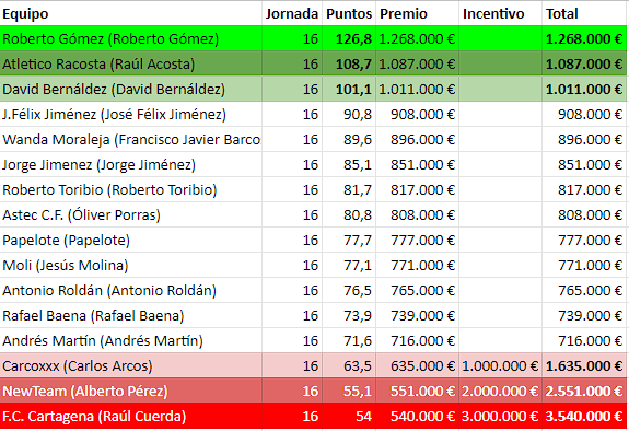 - 14ºs quedan Roldán y Carcoxxx, con 12 puntos.