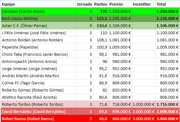 Muy buenos partidos esta jornada, se salieron Carcoxxx y Moli, con remontada brutal con el último partido. Interesante también la victoria de Papelote desde el entrenador automático... Parece que la temporada ha empezado interesante.